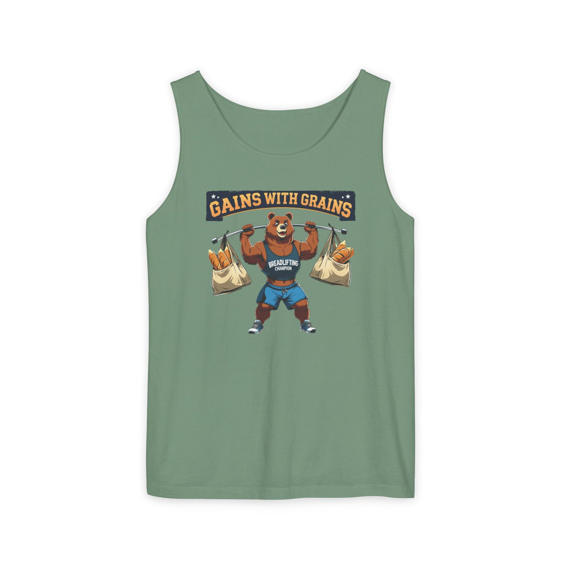 Breadlifting Champion – Funny Gym Tank Top | Gains With Grains Muscle Bear Shirt | Fitness & Carb Lover Workout Humor